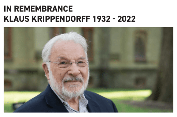 | The passing of former ICA president Dr. Klaus Krippendorff in October 2022 was a significant blow to this community in which he loomed so large. In addition to the official services for his passing, he was honored at ICA23 in Toronto with a lovely, intimate memorial during which friends, family, and colleagues shared their memories of this icon of the field and wonderful, caring man. ICA is honored, now, to announce that the Klaus Krippendorff Memorial Travel Grant Fund has just been established (October 2023) to honor his legacy, impact, and decades of service to both ICA and the communication field as a whole. The fund will provide support for ICA annual conference travel to a promising Global South student in the field of Visual Communication—long considered Klaus’ “home” Division at ICA, though his influence was felt across the association. The fund was created by a generous donation from Dr. Krippendorff’s estate and gifted into ICA’s safekeeping by his wife Dr. Margaret Thorell and children Heike Sullivan and Kaihan Krippendorff, who will serve as trustees of the fund along with the current chair of the Visual Communication Division (currently Dr. Saumava Mitra). We express our heartfelt thanks to the Krippendorff family for entrusting ICA with this honor. Those who wish to donate to the Krippendorff Fund may contact Saumava Mitra, VCS Chair for more information. |